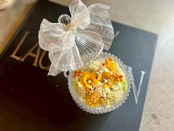 プリザーブドフラワーとドライフラワーを使用してますので高温多湿の場所には置かないようお気をつけください。