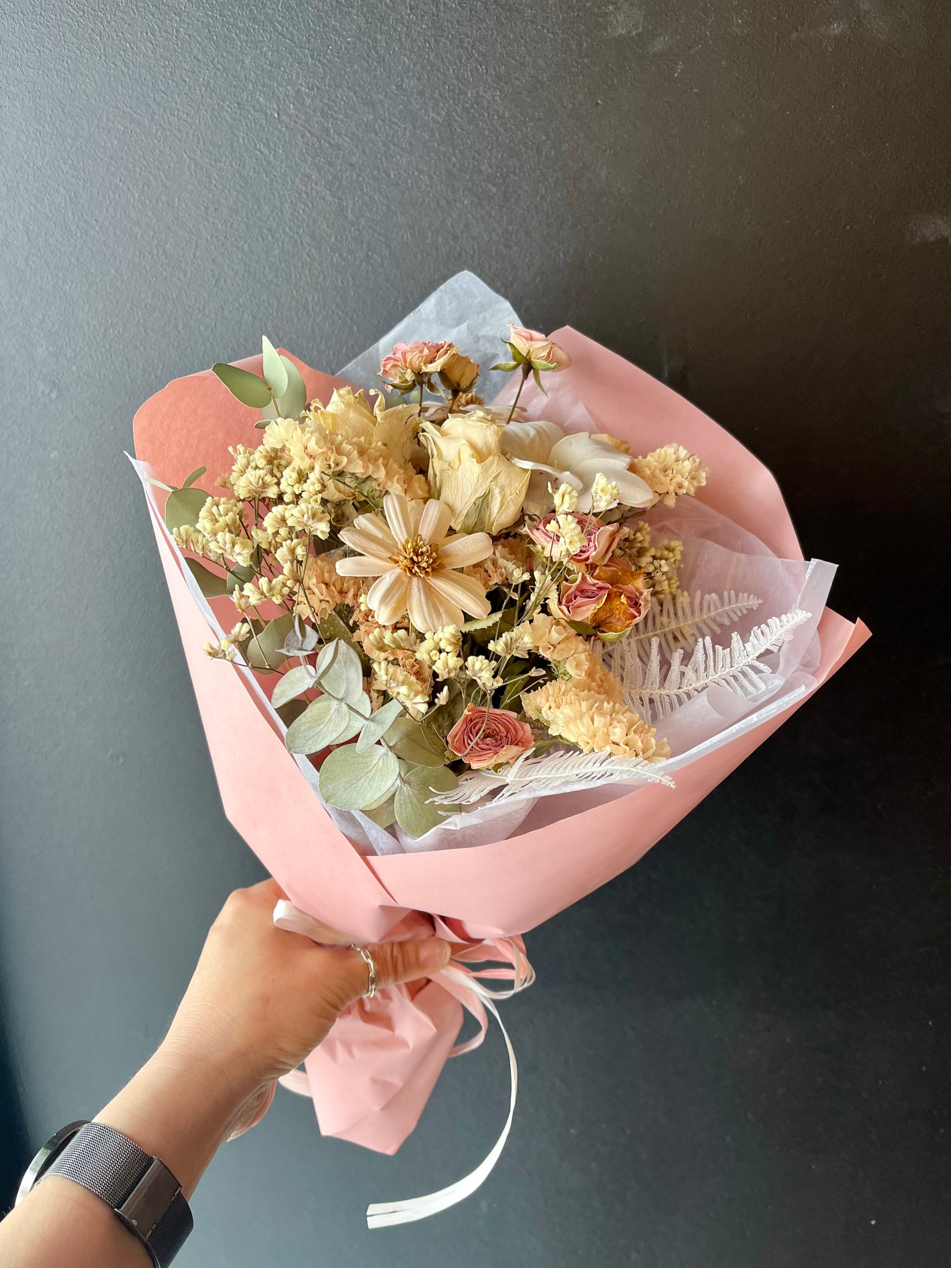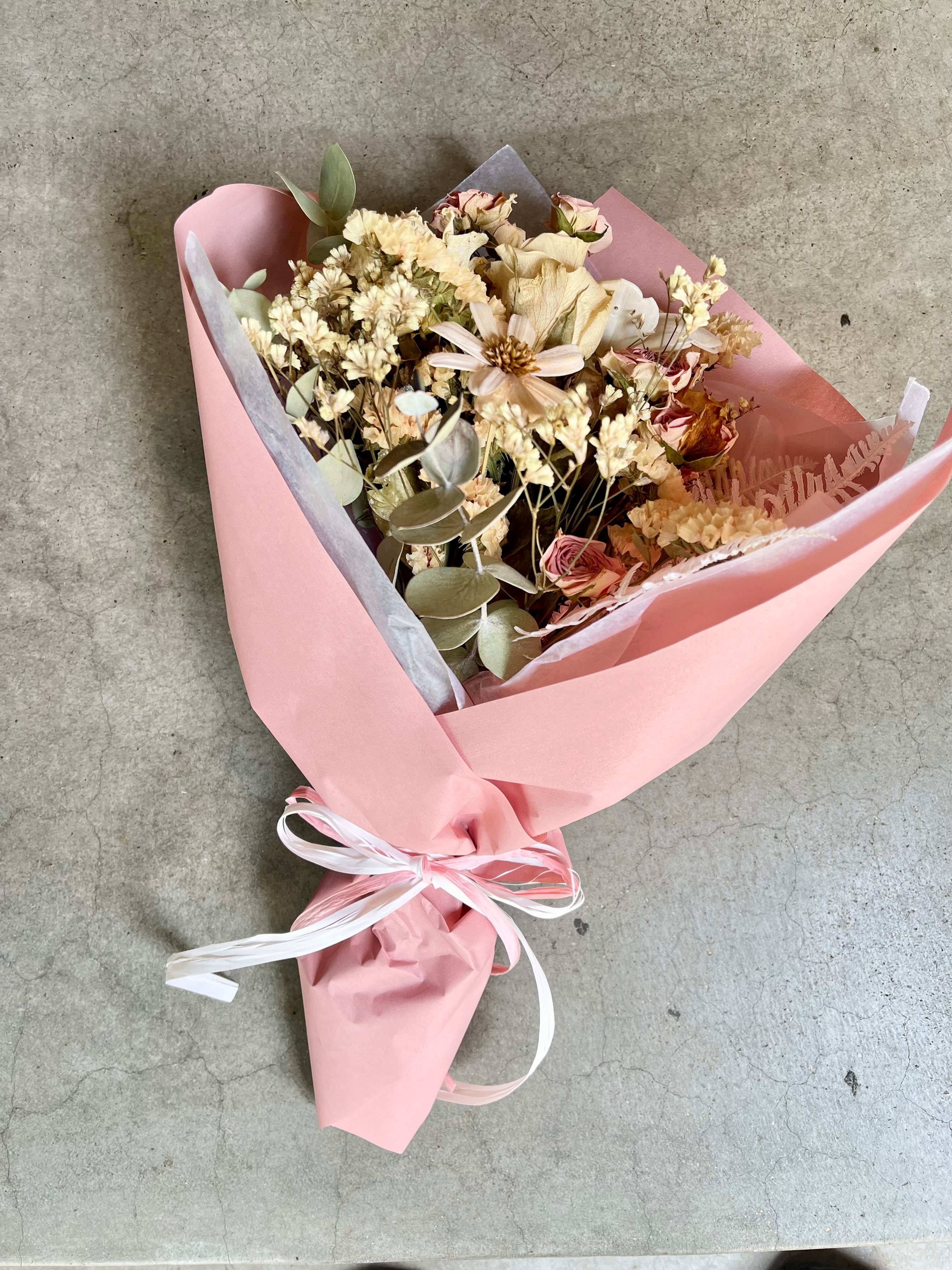 ドライフラワー花束【ホワイト&ピーチピンク】